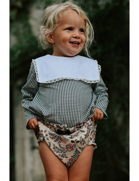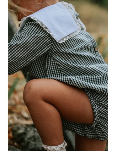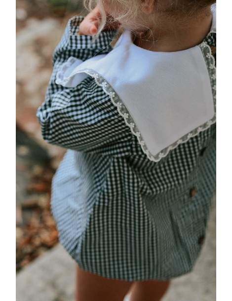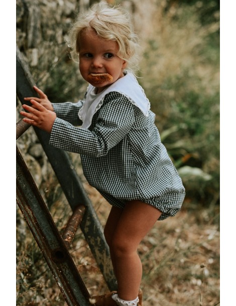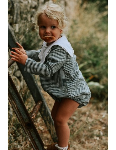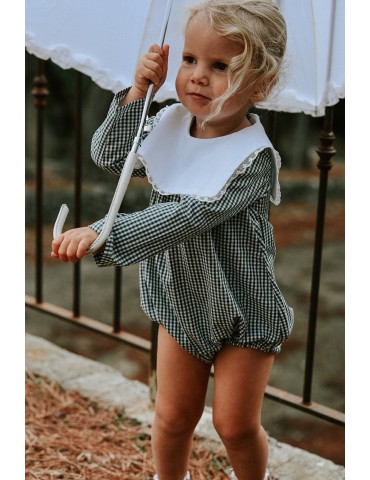 Une douce barboteuse vichy, avec une délicate broderie autour de son col carré. Un vrai intemporel à avoir dans sa garde-robe.