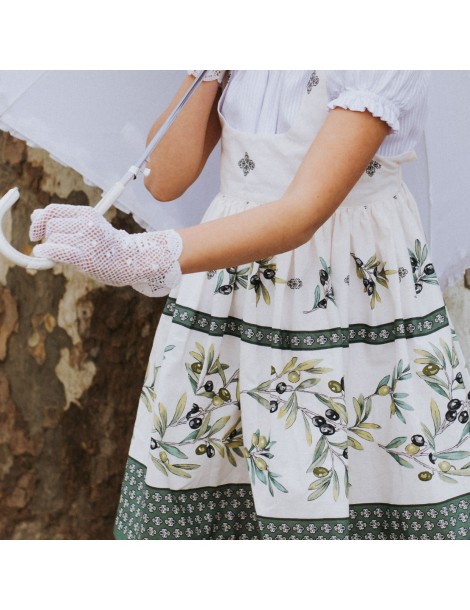 Katy, c'est l'association raffinée d'une jupe qui tourne, d'un petit plastron et de ses bretelles, d'une ceinture élastique avec de discrets petits volants pour peaufiner les détails... c'est surtout l'indémodable et indispensable robe de la saison !